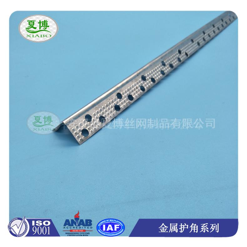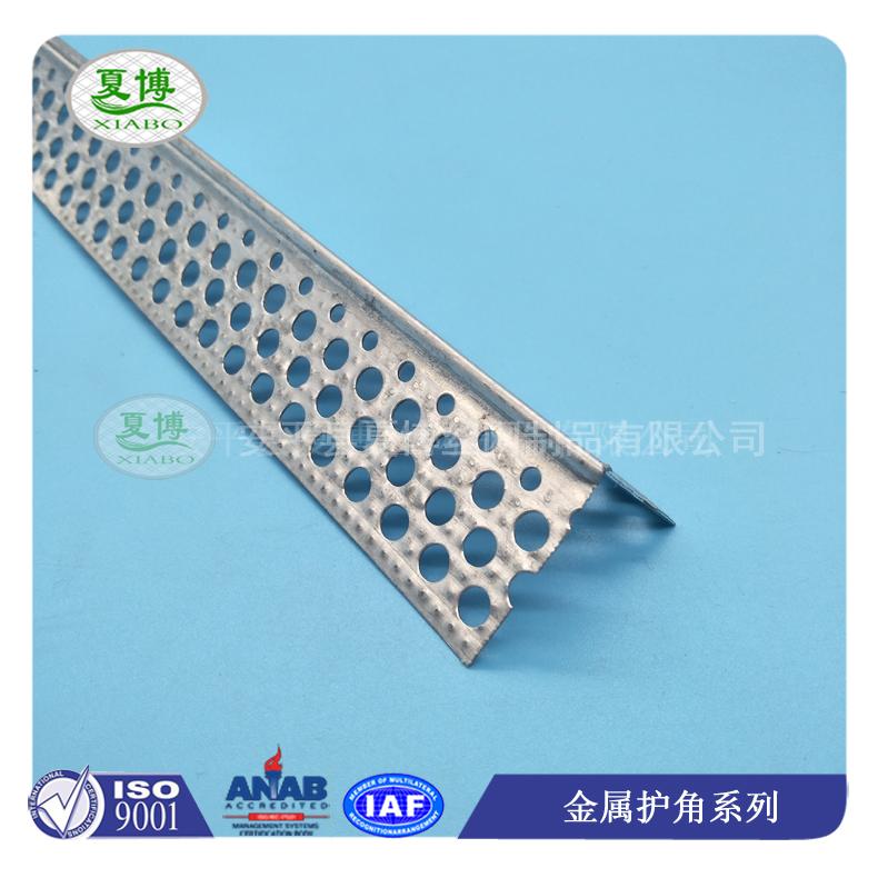 (3)、樓梯護(hù)角網(wǎng),通過(guò)圓孔方便打釘,且使得護(hù)角條與邊角部位的石膏板或者其他粘結(jié)材料結(jié)合的更加牢固。